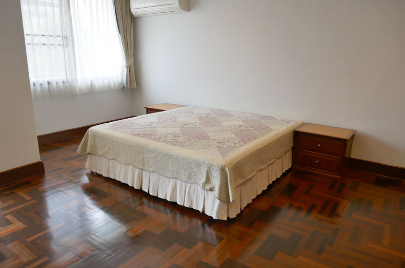 バーン パカプンは、スクンビットソイ24に立地するアパートメントです。間取りはツーベッドルームからフォーベッドルームまであるファミリー向け物件で、90年代に建てられた賃貸独特の、広い面積と、上質なウッドを使用した高級感のあるインテリアがあるお部屋です。機能面も充実しており、収納が多く、浴室には洗い場があり、キッチンは独立したスペースのクローズドキッチンとなっています。築年数は経っていますが、きれいに管理されており、南国らしさが感じられる住環境です。