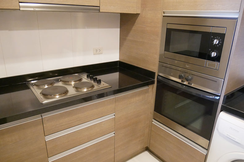 電子コンロ、マイクロウェーブはもちろん、本格的なオーブンまで完備されています。