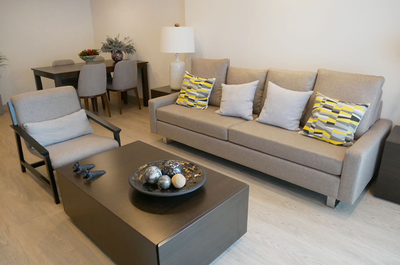 お部屋のトーンにマッチした品の良いソファでゆったりと寛げます。
