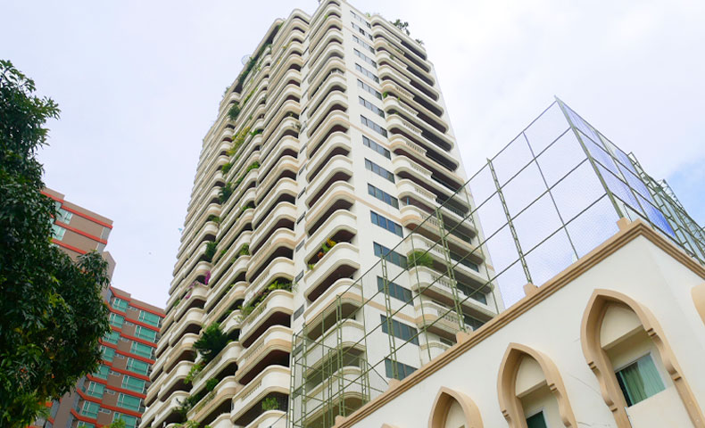 チャラン タワーは、プロンポンのスクンビットソイ43に立地するアパートメントです。築年数が1992年と築深で古さ否めませんが、ワンフロア2ユニットで、日本人にとっては驚きの広さを持ったお部屋は魅力です。BTSプロンポン駅まで近い便利な立地で、築年数以外は好条件が揃った物件です。