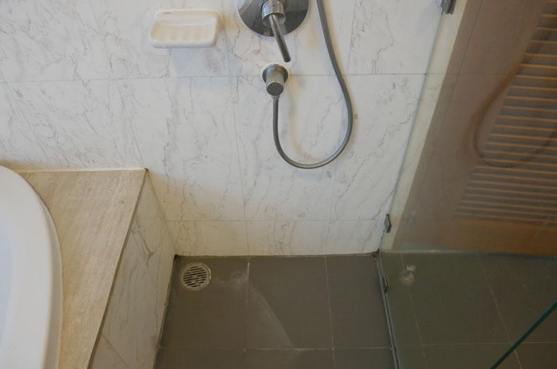 大理石の豪華なバスルーム。広いバスタブ付きです。