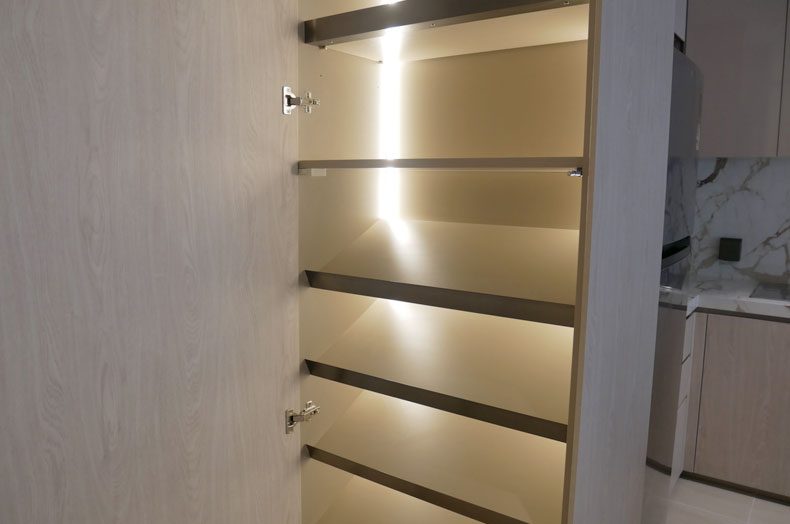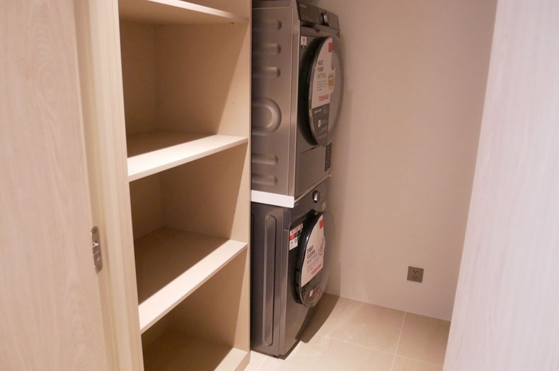 キッチンの横はストレージになっており、洗濯機と乾燥機が格納されています。