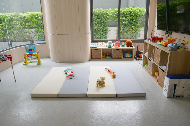 ファシリティは、日焼けを気にせず利用できる屋内プールや、サウナ、スチームサウナ、キッズルーム、駐車場にはEV車用充電が完備されています。