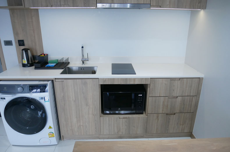 IH、マイクロウェーブ、コーヒーメーカーが完備されています。