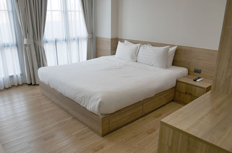 ホテル棟とレジデンス棟にわかれており、ウッドがふんだんに使用されたスタイリッシュなお部屋は日本人に好印象です。間取りはワンベッドルームとツーベッドルームがあり、家電や調理機器などが完備され、長期滞在も快適に生活することができます。お部屋面積が広く、ワンベッドルームでも50平米あり、ツーベッドルームは75〜150平米あります。