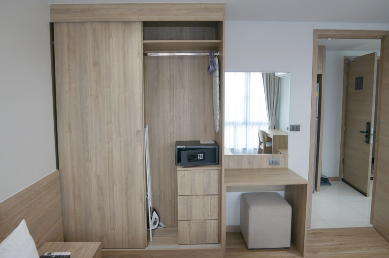 クローゼットにはセーフティボックス、アイロンが完備されており、ドレッサーもあります。