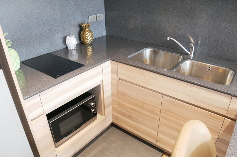 シンクは2層あり、IH、マイクロウェーブがあります。