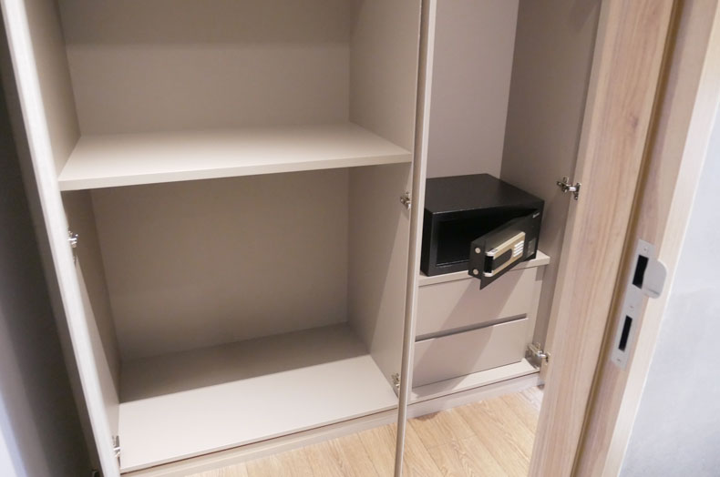 セーフティボックスのあるクローゼットは広く、たくさん収納可能です。