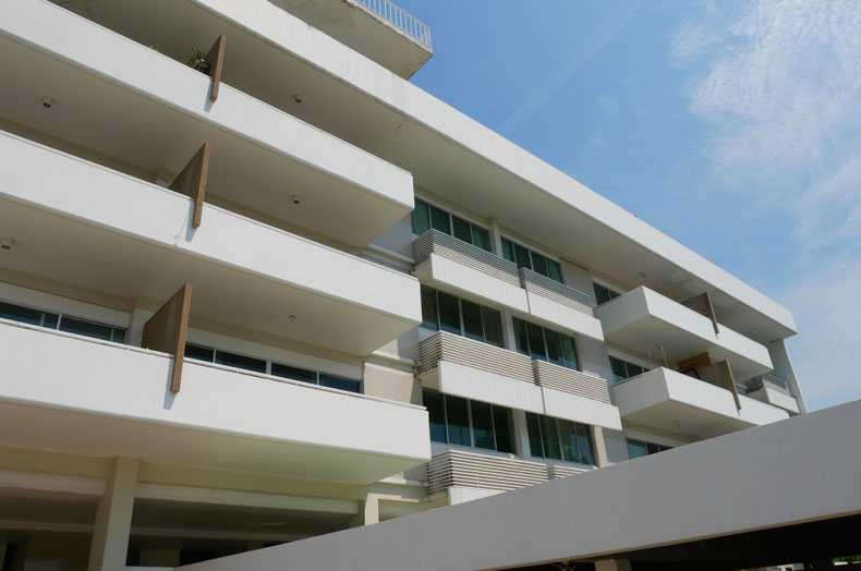 ピーピーアール レジデンスは、プラカノンのスクンビットソイ71から入ったプリディ27に立地しています。5階建てのわずか12室で、ヴィラ風のリゾート感あふれるプライベートレジデンスです。間取りはツーベッドルームのみで、白を基調とした広いお部屋は、採光の良い明るい空間で、スクエアな間取りは使い勝手の良い導線となっています。