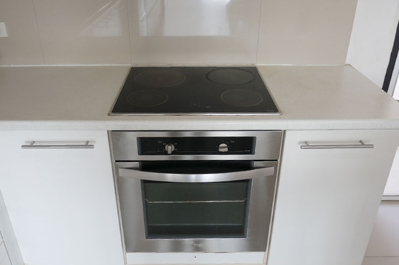 4つ口のIH、本格的なオーブンがあり、快適にお料理できます。