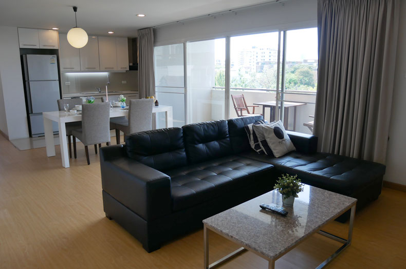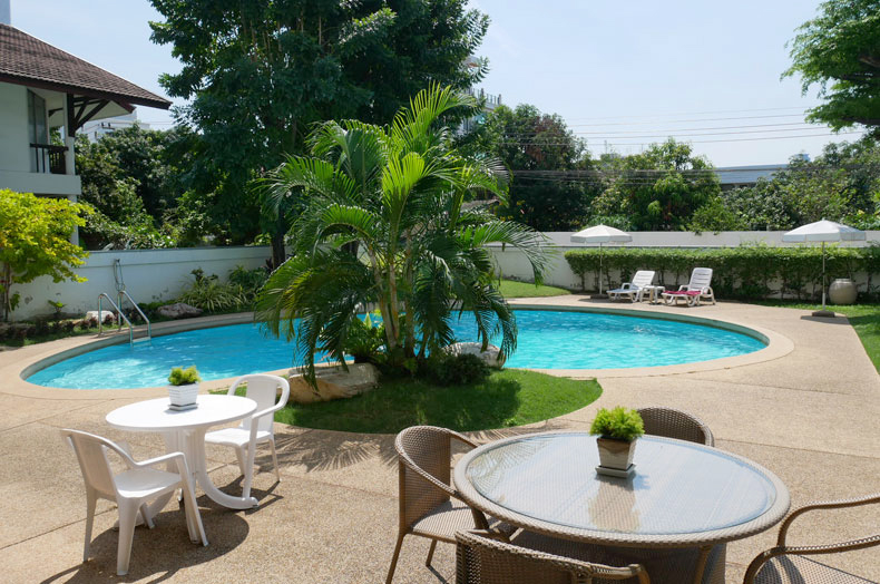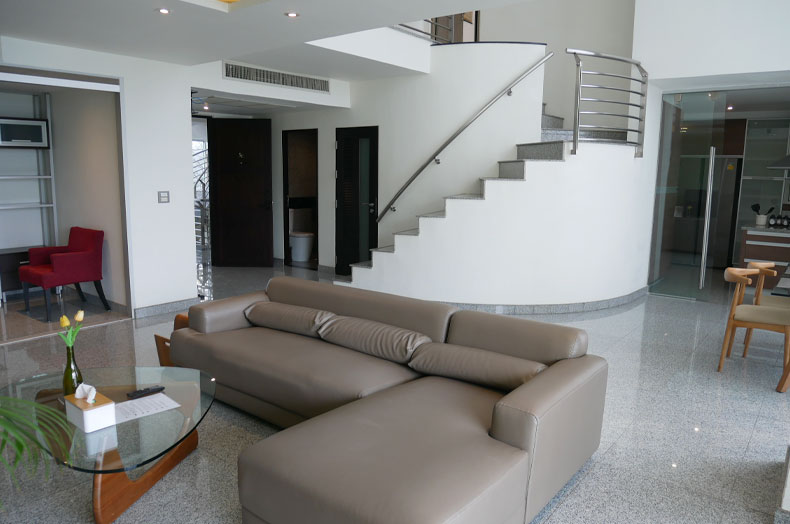 セブン プレイス エグゼクティブ レジデンスは、スクンビットソイ71のファミリー向けサービスアパートメントで、別荘風の佇まいのある落ち着いた雰囲気を持っています。間取りは、ツーベッドルームとスリーベッドルームがあり、デュプレックスタイプのユニットもあります。デュプレックスタイプのお部屋は1階、2階部分ともに広く、ユニットによっては業務用の厨房のようなキッチンがあり、本格的にお料理できます。
