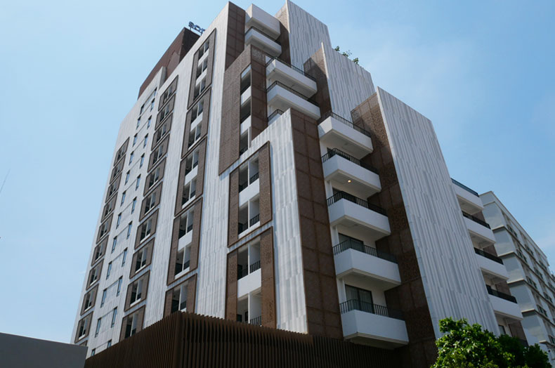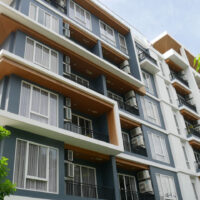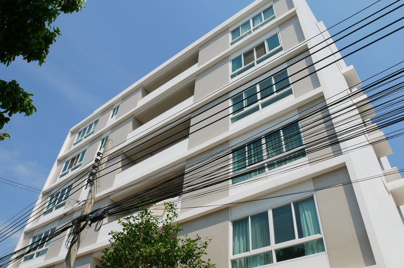 ピーピーアール レジデンスは、スクンビットソイ71から入ったプリディ27に立地しています。ヴィラ風のリゾート感あふれるつくりで、5階建てで12室の贅沢な構成となっています。間取りはツーベッドルームのみで、白を基調としたシンプルで広いお部屋は日本人にも好印象です。