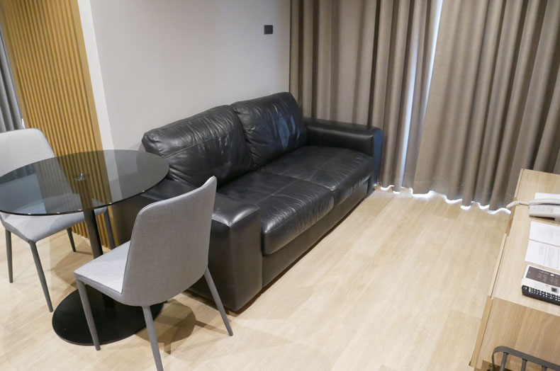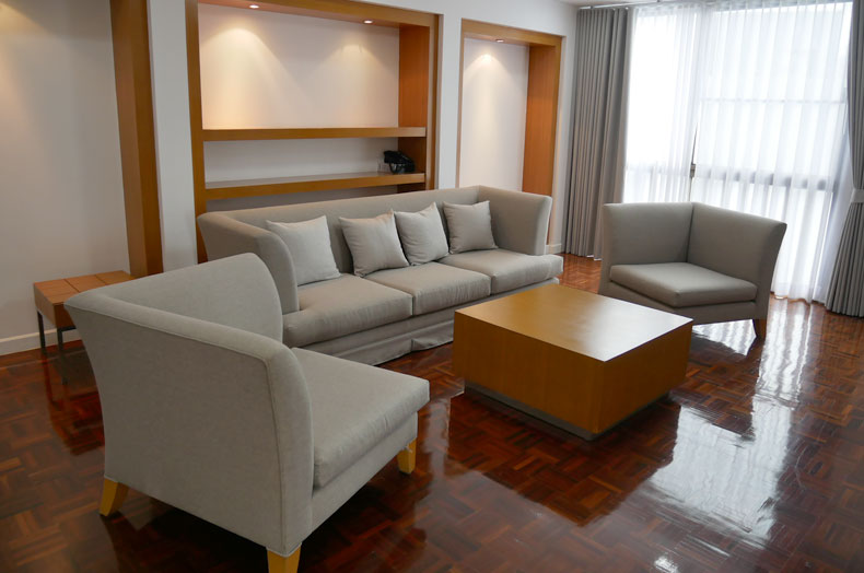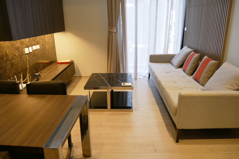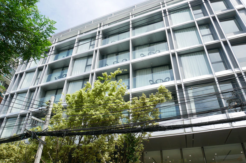 アスピラ トロピカル レジデンス トンローは、サミティベート病院まで徒歩8分ほどの立地のサービスアパートメントです。ロビーはホテルタイプの雰囲気がありますが、お部屋は長期滞在に対応したアパートメント機能が完備されており、現代風にジャパンテイストを取り入れた、日本人にとっては落ち着ける空間となっています。間取りは、ワンベッドルーム、ツーベッドルームがあります。