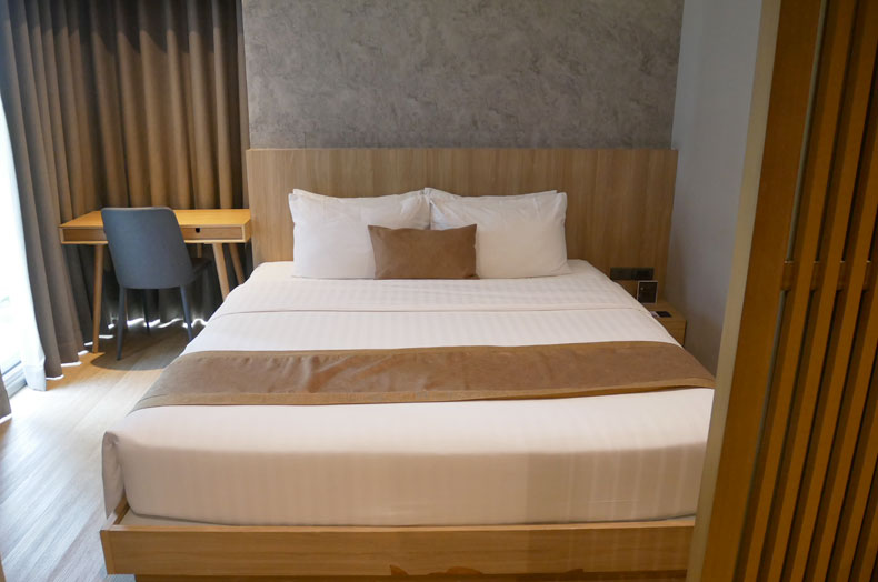 2025年8月にオープンしたばかりのイメージ 49は、サミティベート病院へ徒歩5分少々の立地のサービスアパートメントです。日本人好みの、ウッドが基調となったスタイリッシュな内装の明るいお部屋で、浴室はバスタブと洗い場があり、トイレはウォシュレット付きで、バリアフリー構造になっています。間取りはワンベッドルームからスリーベッドルームまであり、ツーベッドルームはお部屋タイプのバリエーションがあります。