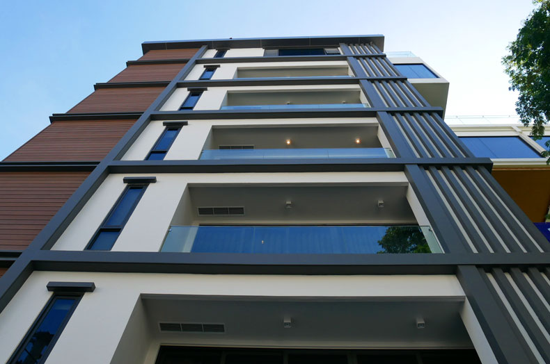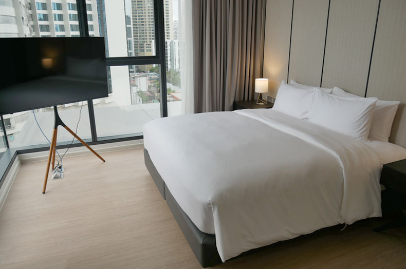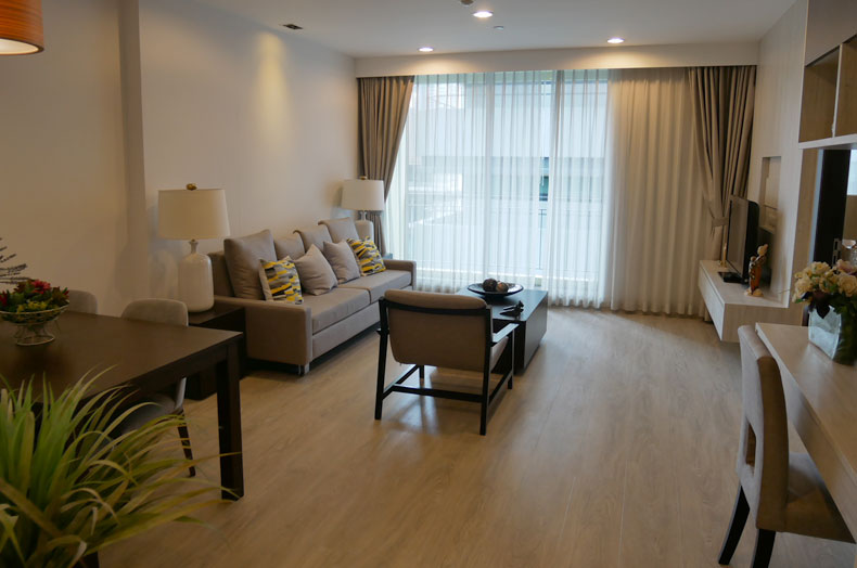 アソークとプロンポンの中間にあるスクンビットソイ20に立地しています。14階から25階が長期滞在のレジデンスとなっており、間取りはワンベッドルームからフォーベッドルームまで豊富なバリエーションがあります。日本人に好印象のシンプルで高級感のあるインテリアや、ファニチャー、最新の家電などが備わっています。タイプによって広いバルコニーがあり、トイレは感知センサーで動作のウォシュレット付きです。