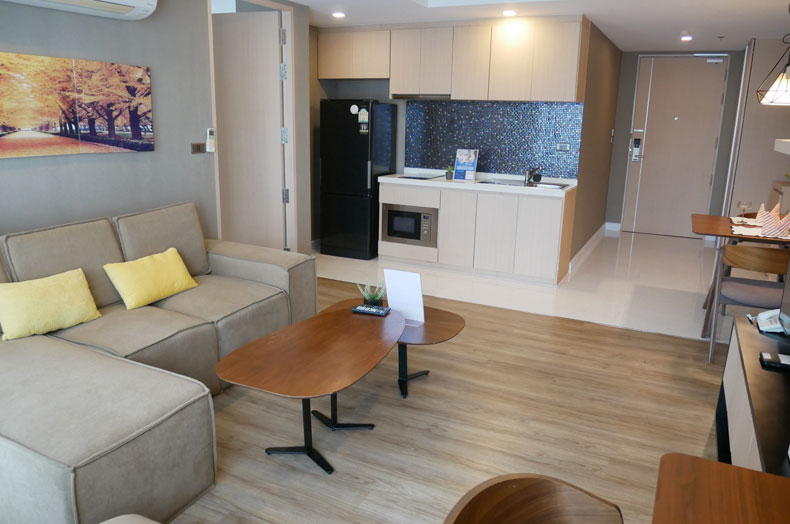アズールは、スクンビットソイ39通り沿いに立地するアパートメントで、外観は名前の通り落ち着きのあるブルーがあしらわれた現代風の建物です。間取りは、ツーベッドルームのみで、広さの異なるユニットから選ぶことができます。お部屋は、日本人好みのシンプルで、ウッドがふんだんに使用されたスタイリッシュな空間です。