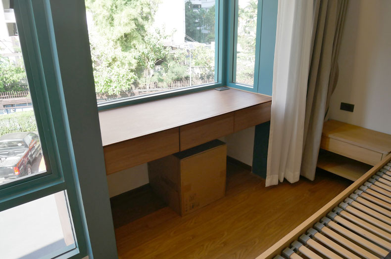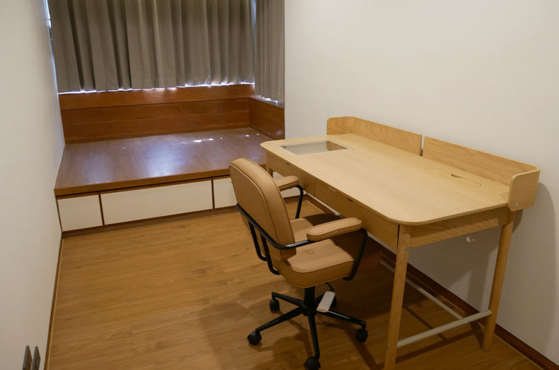 就学児向けのサードベッドルームは、しっかりした勉強机が完備されています。書斎部屋としても使えますね。