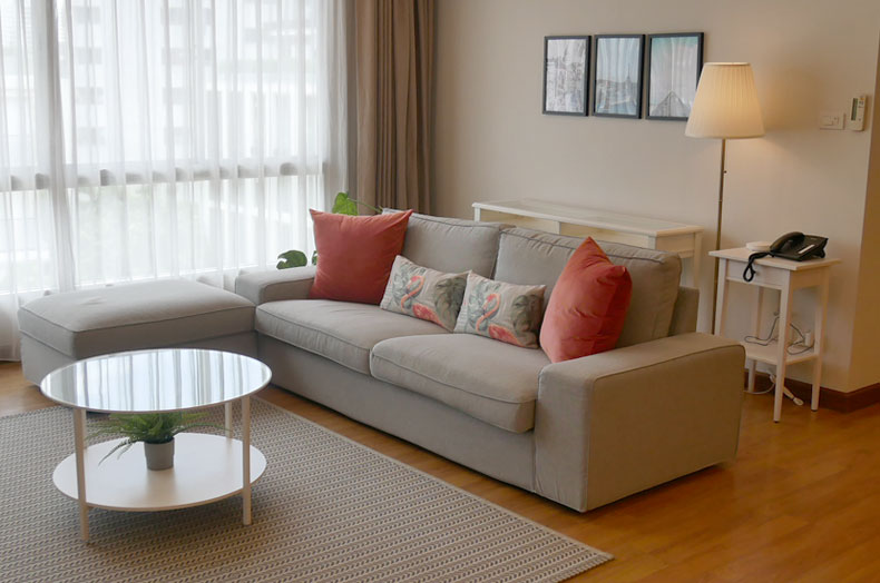 シュロス アット トンローは、スクンビットソイ55に接する閑静な住宅街にあるプライベートレジデンスで、全30室のモダンなお部屋を提供しています。シックな雰囲気のファミリー向けツーベッドルームについてご紹介いたします。