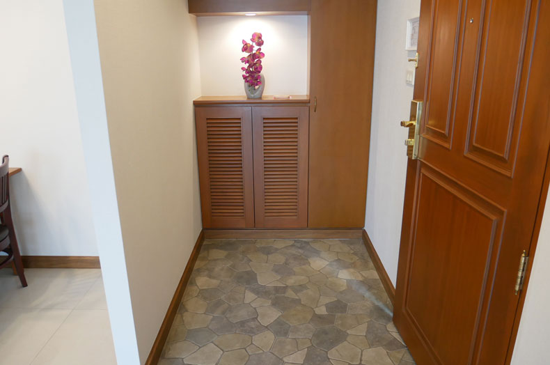 タイの賃貸では玄関のドアを開けるといきなりリビングという構造がほとんどですが、こちらの物件では日本の住居のような玄関ホールがあり、安心感があります。