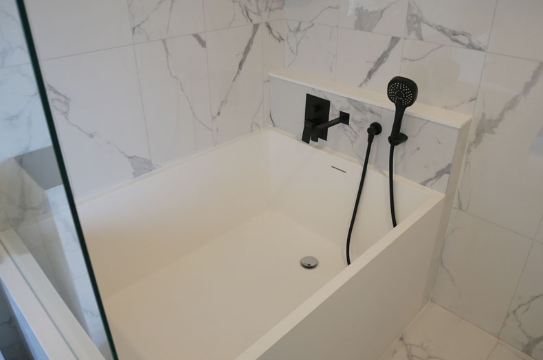 スクエアなかたちがかわいいバスタブ。