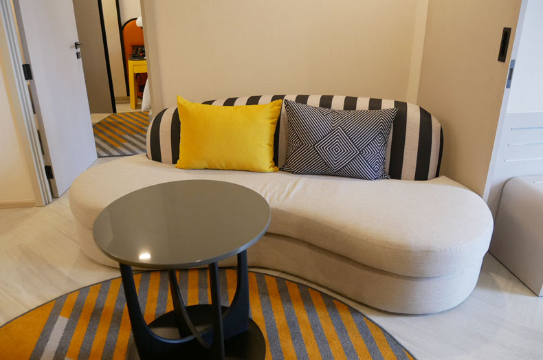 ポップなデザインのソファで寛げます。