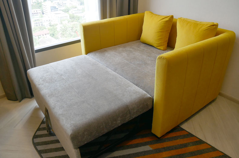 スクンビットソイ39は、プロンポンでも日本人に人気のエリアで、BTSプロンポン駅に近く、日本食レストランや、日系スーパーなどのある便利さが魅力です。トライブ リビング バンコク スクンビット 39は、そんなスクンビットソイ39に立地するホテルタイプのサービスアパートメントで、おしゃれなデザインのお部屋に、充実したファシリティが完備されています。同物件の単身者向けワンベッドルームで、プラスワンのソファルームがあるラグジュアリーなユニットをご紹介いたします。